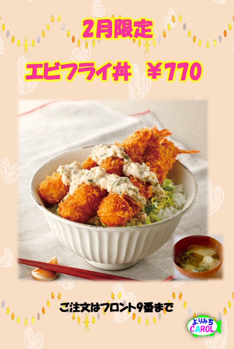 2月のシェフおススメ月替わり定食は【エビフライ丼】