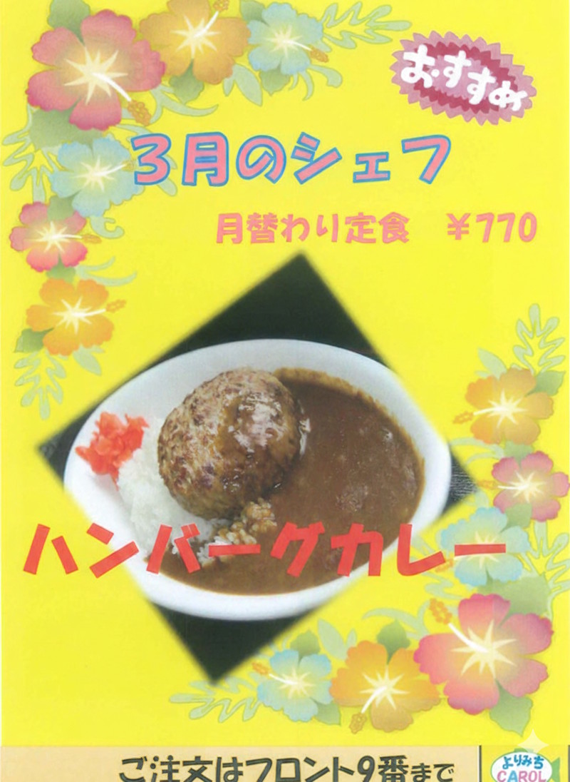 3月のシェフおススメ月替わり定食は【ハンバーグカレー】